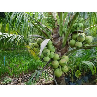 ขายพันธุ์มะพร้าวน้ำหอม พันธุ์มะพร้าวน้ำหอม เตี้ย บ้านแพ้ว ดำเนิน ก้นจีบ ใบเตย.